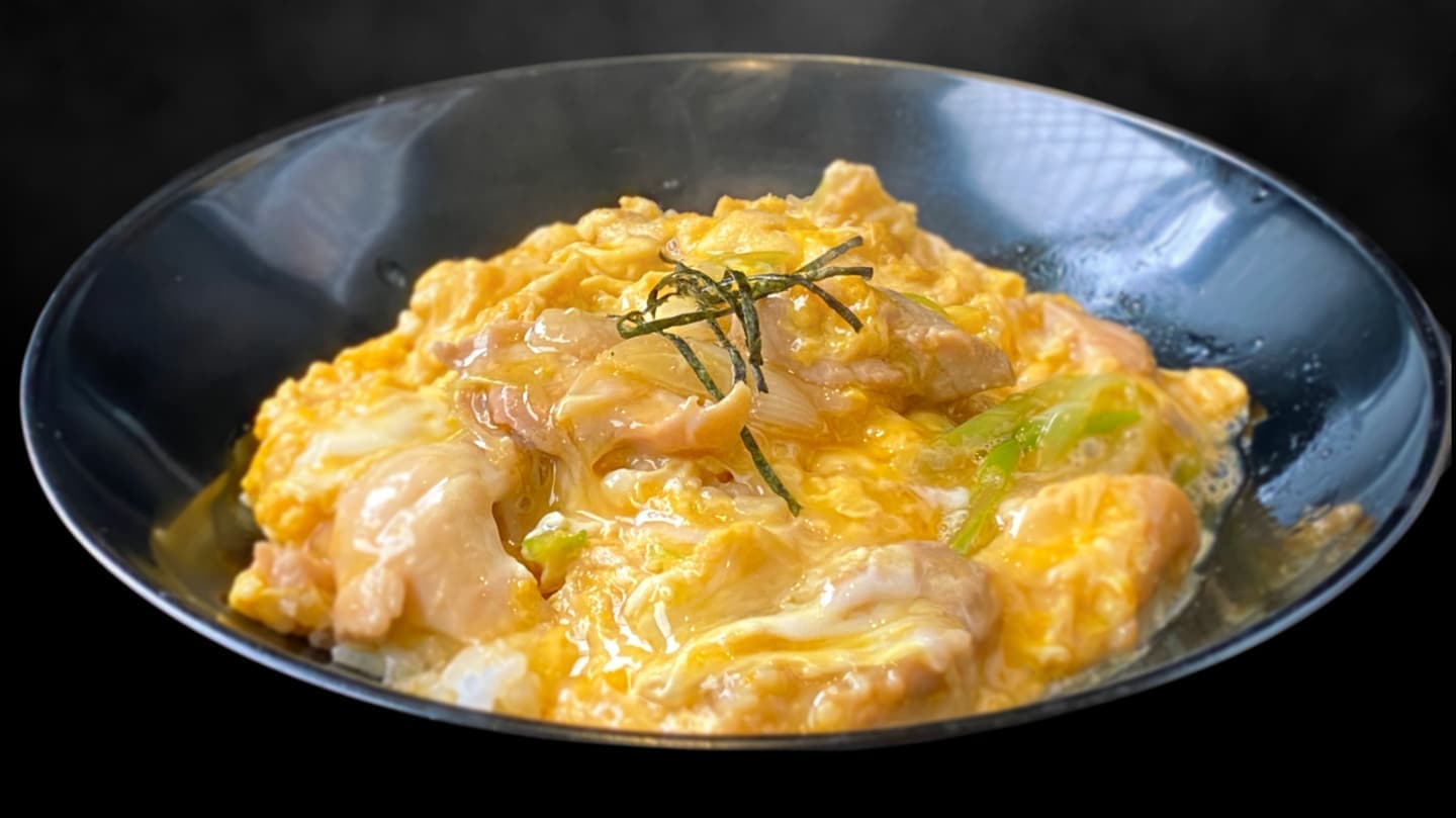 それを改良してできた本宮烏骨鶏の、栄養価も高く、濃厚な味わいの卵を使用した親子丼です。やわらかな国産若鶏のお肉と合わせてお楽しみいただけます。